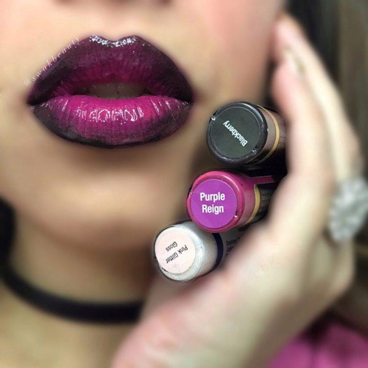 Il est recommandé d’appliquer un surligneur pour les lèvres sous de tels rouges à lèvres afin que les lèvres ne se dessèchent pas et que le pigment lui-même ne puisse pas pénétrer profondément dans la structure des lèvres. Il n’est pas nécessaire d’utiliser un crayon sous un tel rouge à lèvres, la couleur violette mettra parfaitement en valeur vos lèvres.