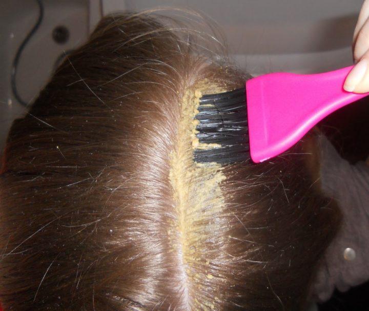 Pétrissez le tout et appliquez sur la tête, essayez de vous mettre le moins possible sur les cheveux, n’utilisez que le cuir chevelu.