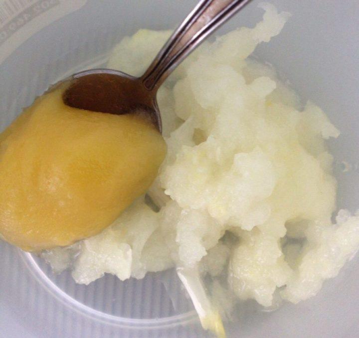 Pour préparer un tel masque, râpez 1 oignon et mélangez 2 cuillères à café avec du miel liquide.
