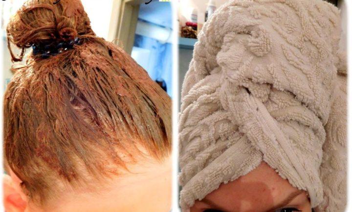 Couvrez-vous la tête avec une serviette, puis après 30 minutes. Et laver à l’eau tiède et au shampoing.