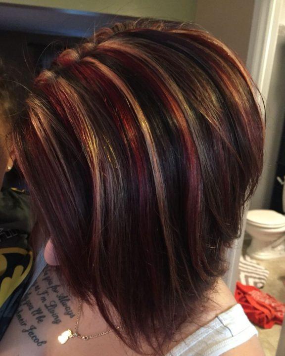 Si tel est le cas, vous pouvez teindre quelques mèches de cheveux en rouge ou d’une autre couleur vive. Ici, il vaut déjà la peine de contacter un coloriste expérimenté pour obtenir des conseils, et il vous dira exactement de quelle couleur vous avez besoin.