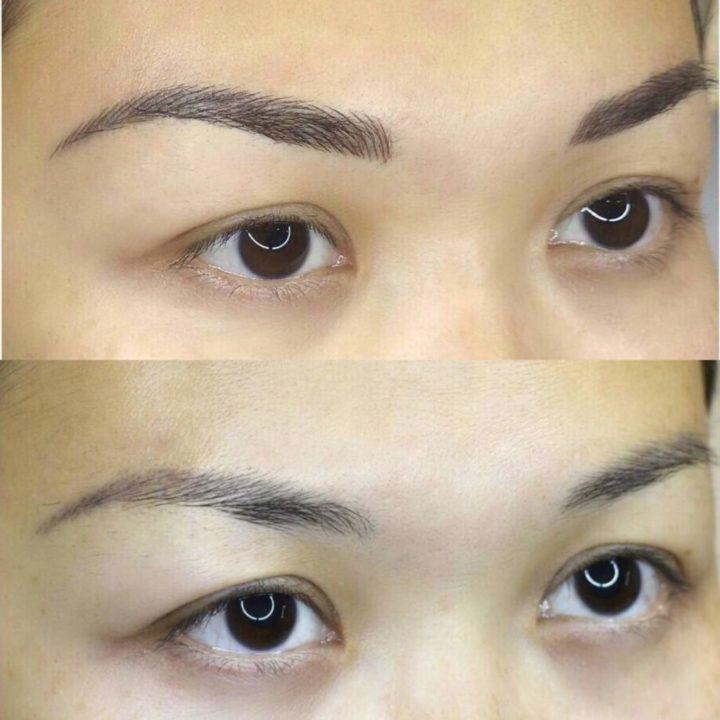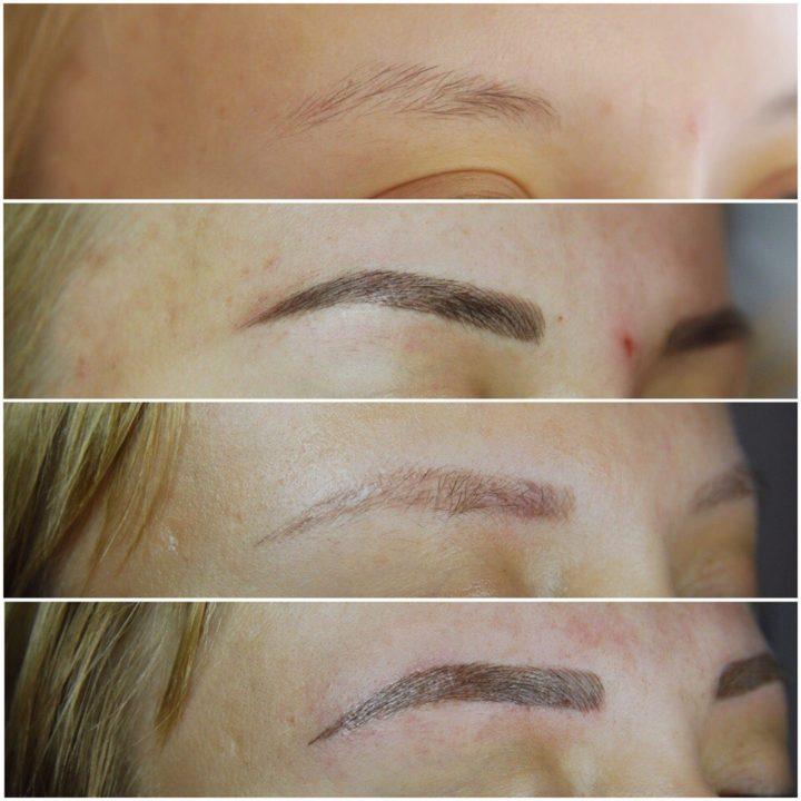 Ensuite, le maître, en utilisant l’une ou l’autre technique, commence à dessiner les poils. Il fait cela avec un outil spécial qui a une aiguille pointue à la fin. Le maître humidifie l’aiguille dans le pigment colorant et l’insère sous la peau à une distance de 0,1-0,3 mm.