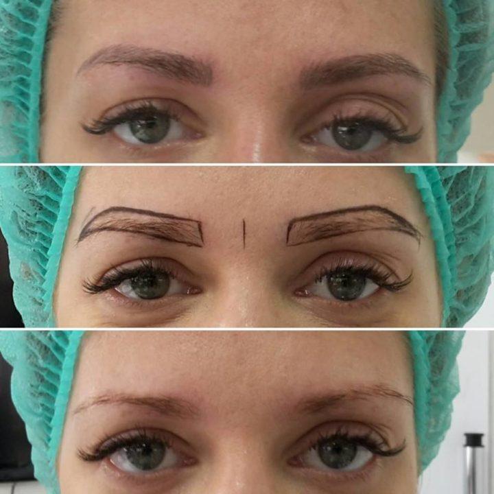 Le tatouage des sourcils est entièrement réalisé par les mains d’un maître sans utiliser de machine. Au tout début de la procédure, vous et le maître dites la forme future, ainsi que la couleur. Après cela, le spécialiste procède au dessin de la forme souhaitée du futur sourcil. Il le dessine avec un crayon spécial et enlève tout ce qui est superflu derrière le contour avec une pince à épiler.