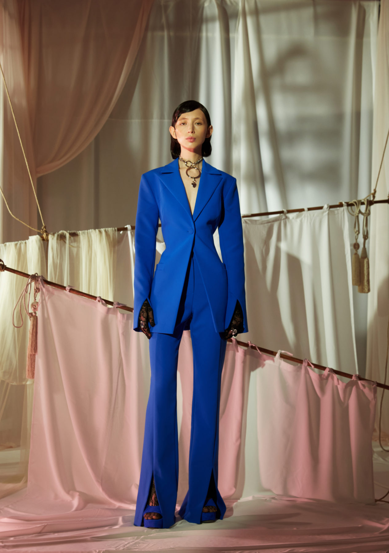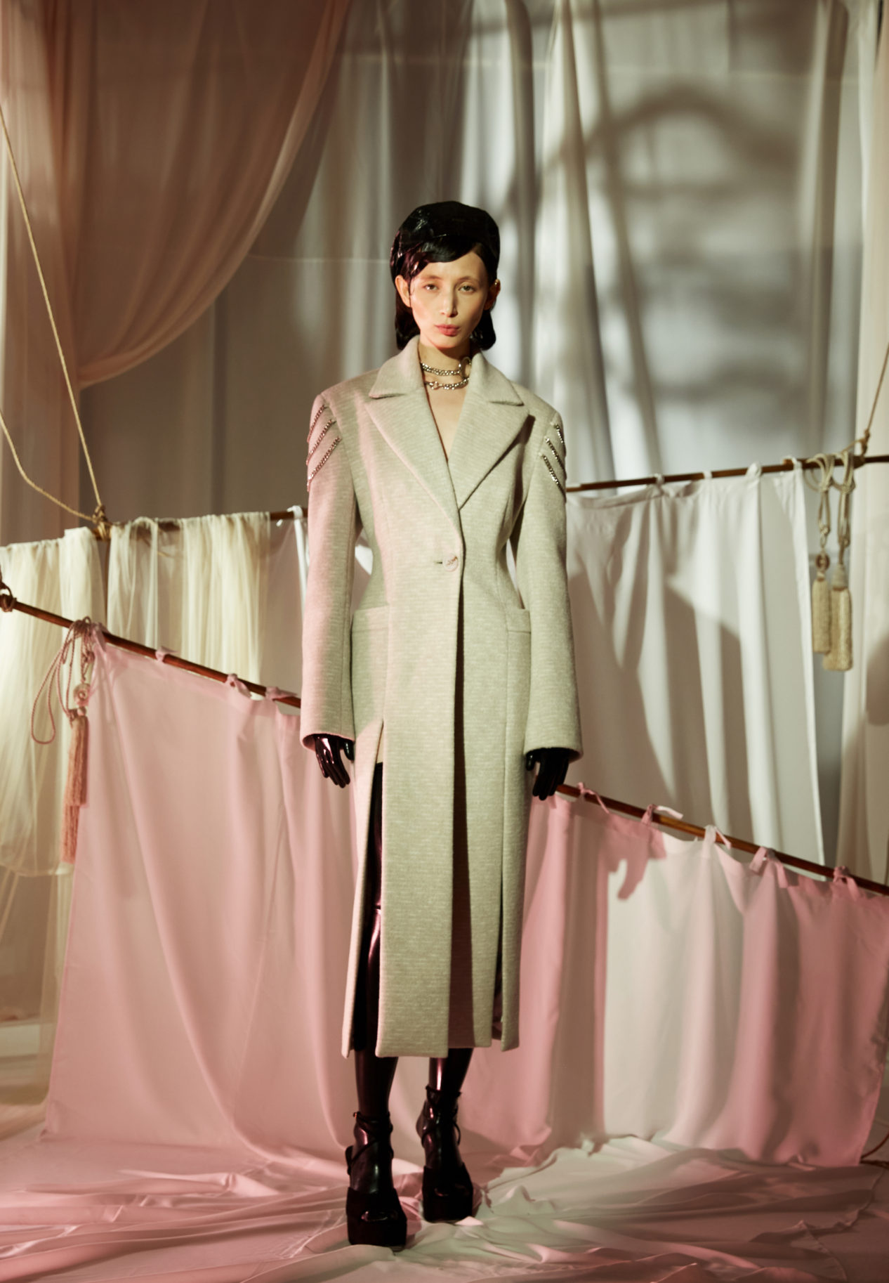 - Les tenues sont souvent multicouches dans des couleurs monochromes ou unies.