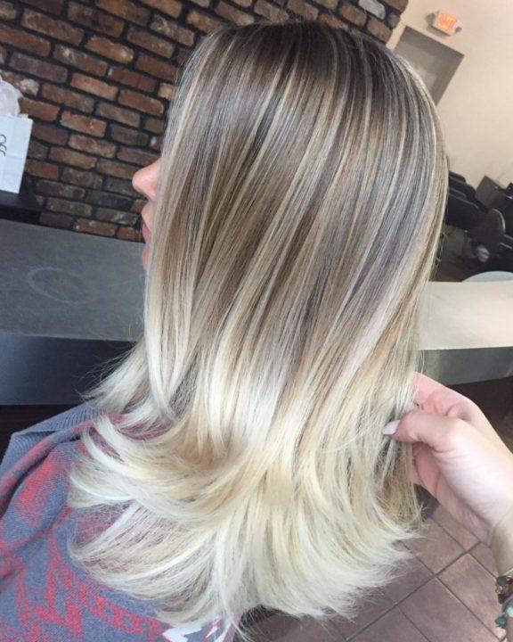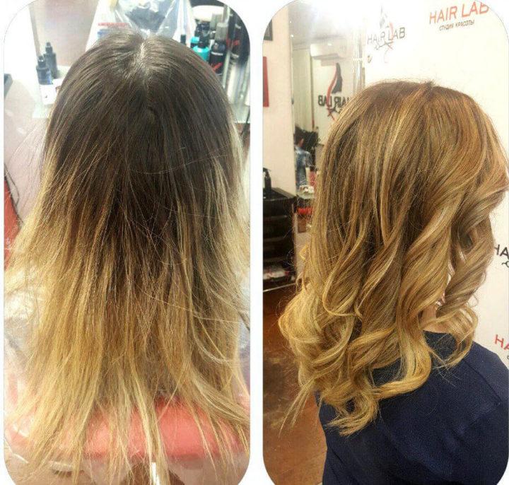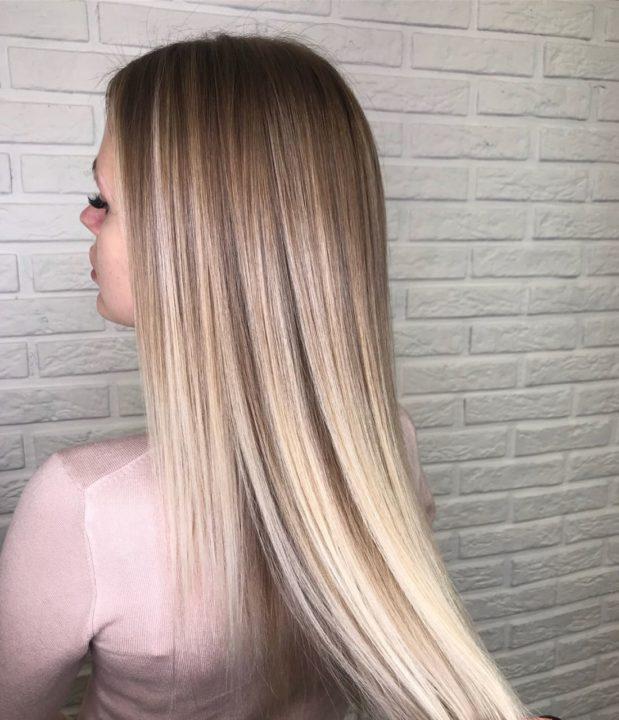 Cette méthode de coloration est très lumineuse et colorée. En particulier, il convient mieux aux filles aux cheveux blonds foncés. C’est dans ce cas que vous pouvez joliment éclaircir les cheveux sans avoir recours à une teinture complète des mèches.