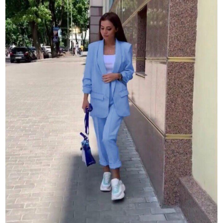 Le bleu est une couleur assez polyvalente car il fonctionne bien avec les peaux claires, olive et foncées. La seule chose à considérer avec la peau blanche, qui peut rendre la pâleur bleue. Dans cette version, vous devez diluer le bleu avec une autre couleur, par exemple, le bleu. Cela harmonisera l’image et le bleu n’agira pas si radicalement. Parmi les choses bleues, vous devez faire attention aux costumes d’affaires. Ils reflètent la couleur du ciel et peuvent parfaitement rafraîchir n’importe quel arc. Il en va de même pour les jeans, où le vrai bleu est difficile à trouver car il est rare et cher.