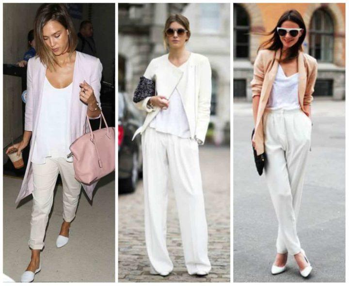 Les pantalons blancs sont appréciés pour leurs excellentes propriétés à réduire visuellement la silhouette d’une femme. Mais vous pouvez obtenir cet effet si vous choisissez un tissu vraiment de haute qualité. Il est facile de combiner des hauts, des chemisiers, des t-shirts et bien sûr des chaussures avec des pantalons blancs.