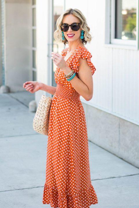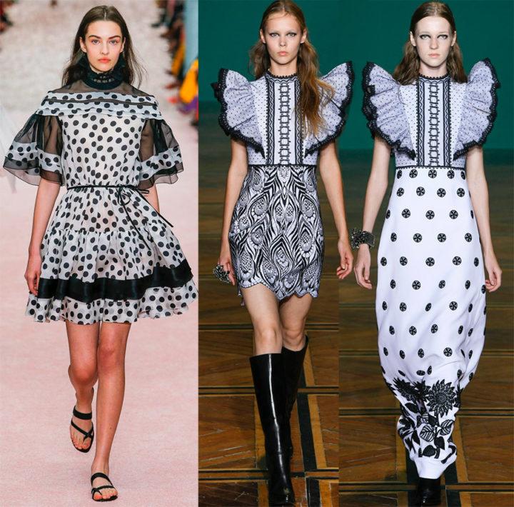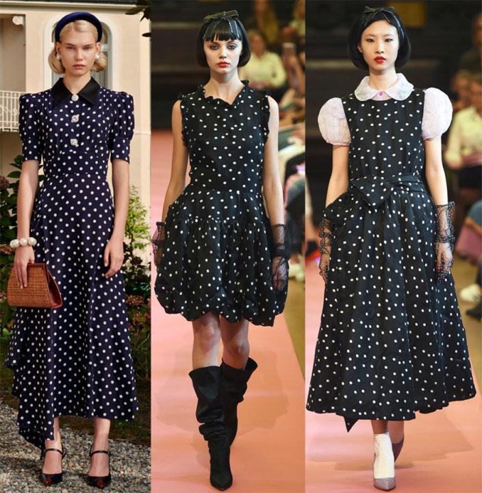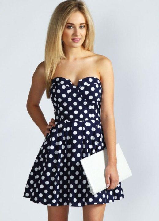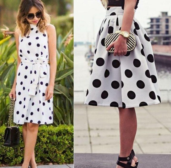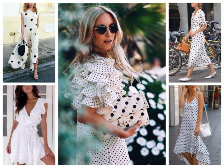 Les pois doux et adorables nous reviennent. L’imprimé pois est pertinent sur les robes, les pantalons, les chemises, les T-shirts, les jupes et autres attributs des vêtements. Le diamètre du cercle de pois peut être n’importe quoi: très petit ou grand. Mais vous devez choisir la couleur en fonction de l’image globale, afin de ne pas la sursaturer.