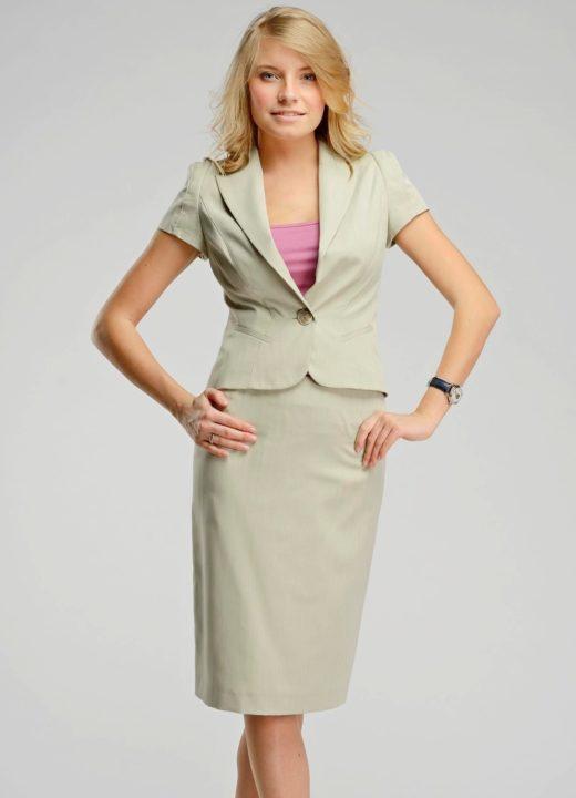 Malheureusement, en été, les vacances ne durent pas toute la saison, donc pour les heures de travail, il a préparé des costumes d’été pour vous. Les costumes eux-mêmes peuvent être formels ou décontractés. Officiel – ce sont les trois habituels, où au lieu d’un pantalon, une jupe est souvent sélectionnée.