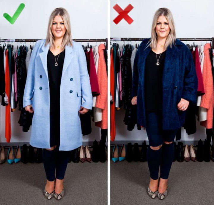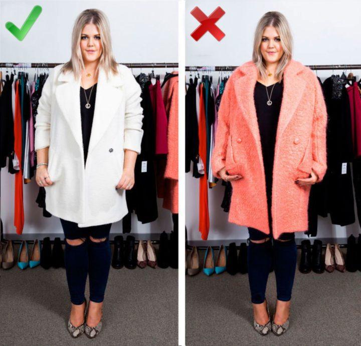 Rappelles toi! Dans votre cas, vous devez augmenter votre taille pour qu’après cela, vous puissiez légèrement étirer la silhouette à l’aide de vêtements et la rendre visuellement plus mince.