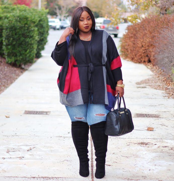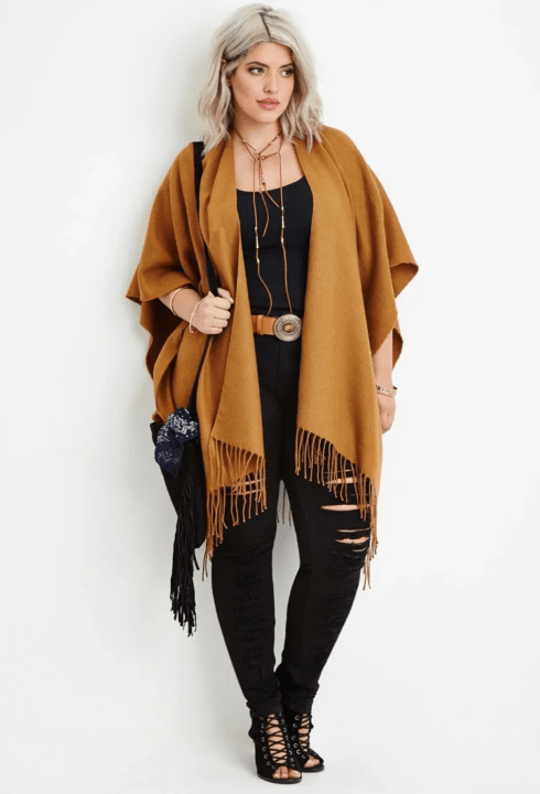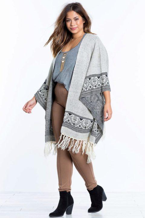 Les modèles longs sombres avec un bord asymétrique sont également à la mode. Les cardigans Boho sont laconiquement combinés avec des pantalons skinny, ainsi que des chaussures à talons. De grands pendentifs compléteront efficacement le look.