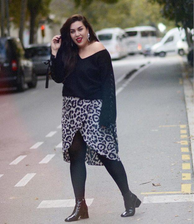 Une impression gagnante pour les femmes rondes est une cage. Un tel dessin corrigera la figure et détournera l’attention des zones à problèmes.