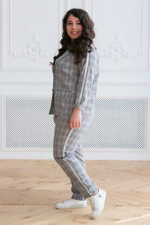 Les pantalons à rayures se distinguent par un style original ce printemps. Ces modèles sont visuellement construits et, en combinaison avec une impression avec une cage, confèrent de l’originalité à l’image.