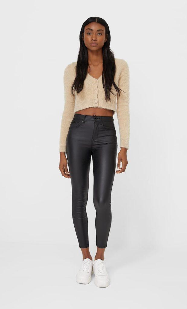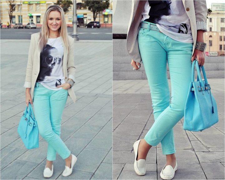 Les peaux sont l’un des pantalons les plus haut de gamme. La polyvalence du style vous permet de créer des looks différents pour chaque jour. Les peaux sont des pantalons moulants à taille mi-haute qui s’adaptent étroitement à la jambe dans différentes longueurs. Combinées avec des hauts et des talons hauts, les peaux créent un look sexy. Mais avec des chemisiers ou des chemises, il y aura une bonne tenue de travail. Mais il y aura une combinaison intéressante avec d’autres vêtements. La meilleure extrémité du look sera des chaussures à talons ou à talons compensés, de sorte que la silhouette sera plus élégante et plus mince. En ce qui concerne la silhouette, ces pantalons ont meilleure allure sur les jambes élancées. Depuis le style ajusté soulignera le manque de jambes pleines. Si une femme aux formes a néanmoins choisi un modèle similaire, combinez-le avec un haut allongé à coupe libre. Cela masquera le ventre et les cuisses, ce qui accentuera le pantalon.
