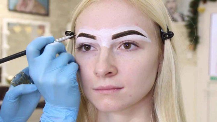 L’artiste sourcil teinte ensuite vos sourcils, et après un certain temps, il enlève le colorant et lave le contour blanc. Tout ce qui n’est pas peint derrière le contour est enlevé par le sourcil avec une pince à épiler.