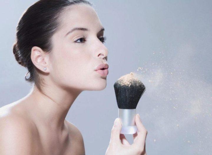 Lorsque vous vous maquillez. Nous prenons de la poudre, en option, et transparente, et l’appliquons dans la zone d’eau avec les yeux et autour des lèvres. Appliquez beaucoup de poudre, le long du contour des cils et autour de la bouche. Il est préférable d’appliquer avec une éponge humide. Lors de l’application, on enfonce la poudre sans frotter.