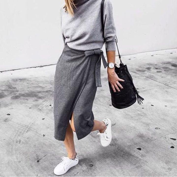 Les jupes enveloppantes peuvent ajouter du volume à vos cuisses, ce qui rendra finalement votre look harmonieux. Ils peuvent être sélectionnés en différentes longueurs, ici, il vaut toujours la peine de partir de la plénitude de vos jambes.