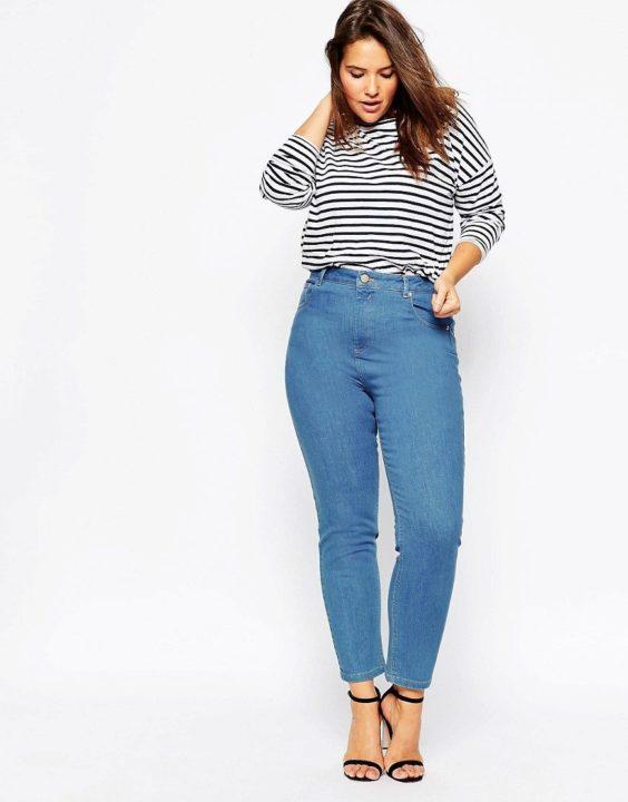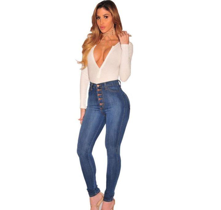 Les jeans taille haute aident à cacher un ventre bombé. En même temps, ils accentueront les hanches et les fesses, et affineront les jambes. Il est particulièrement recommandé pour une pomme pleine de choisir un tel modèle de jean. Après tout, ils sont capables de rendre visuellement vos jambes plus minces.