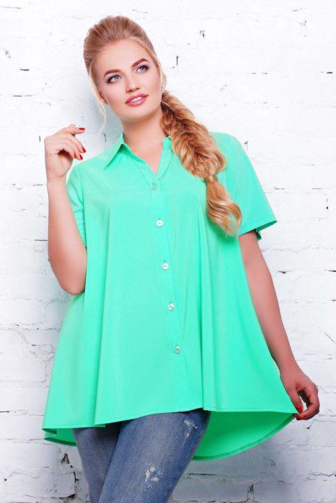 Ces chemisiers ont un haut serré puis un bas évasé. Le plus souvent, ces chemisiers sont également appelés coupe simple. Grâce à cette coupe, il sera très facile de cacher un ventre bombé, ainsi que des problèmes de hanches. Mais pour cela, il vaut la peine de choisir des modèles de chemisiers plus longs.