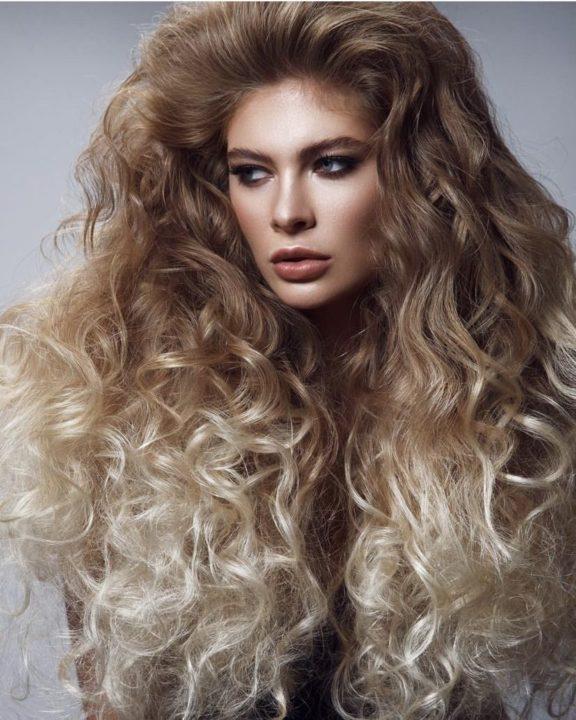 Grâce à la grande permanente, vous pouvez transformer vos cheveux en une véritable œuvre d’art. Tout type de permanente peut être utilisé ici, seul le diamètre des bigoudis ou papillots est sélectionné dans une taille plus grande.
