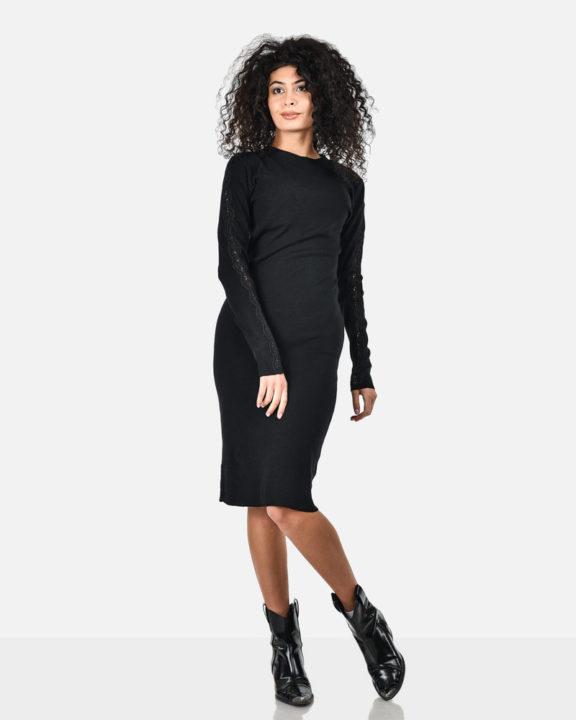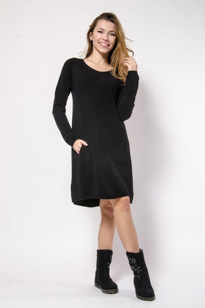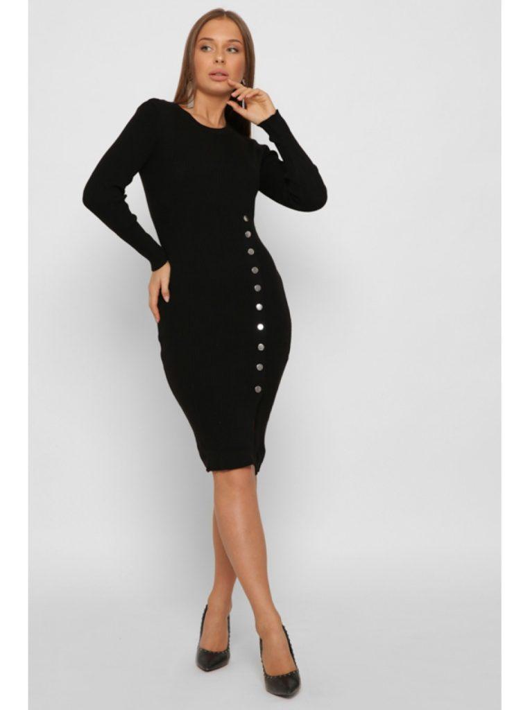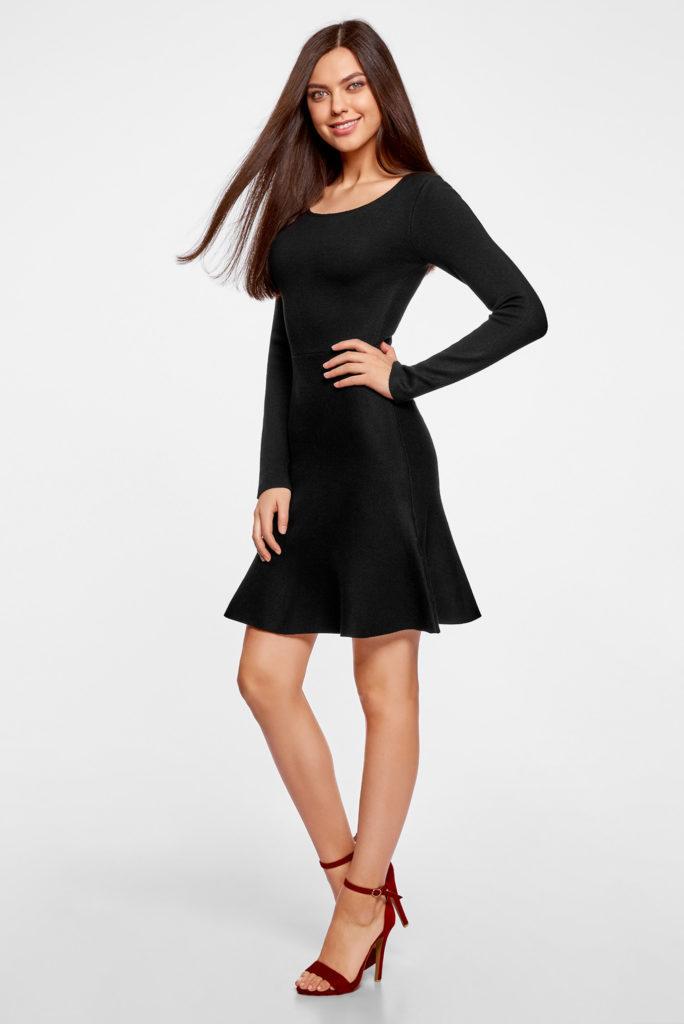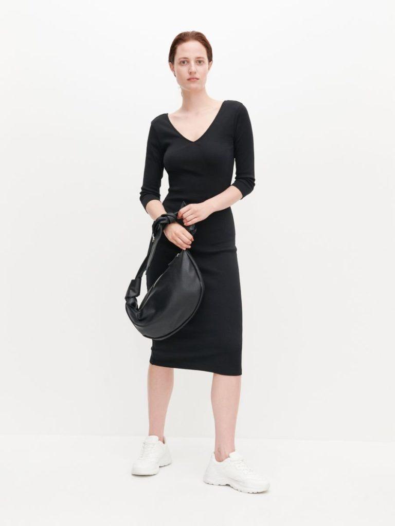 Seules les filles minces aux formes expressives peuvent se permettre une robe noire tricotée. Un tel modèle mettra effectivement en valeur toutes les courbes de la figure. La robe est autonome et ne nécessite pas de décorations supplémentaires. Facile à porter pour des looks décontractés et de soirée. Il sera plus spectaculaire avec des chaussures à talons hauts.