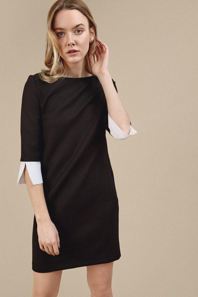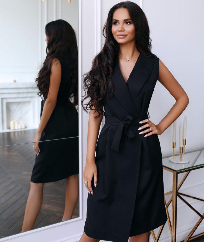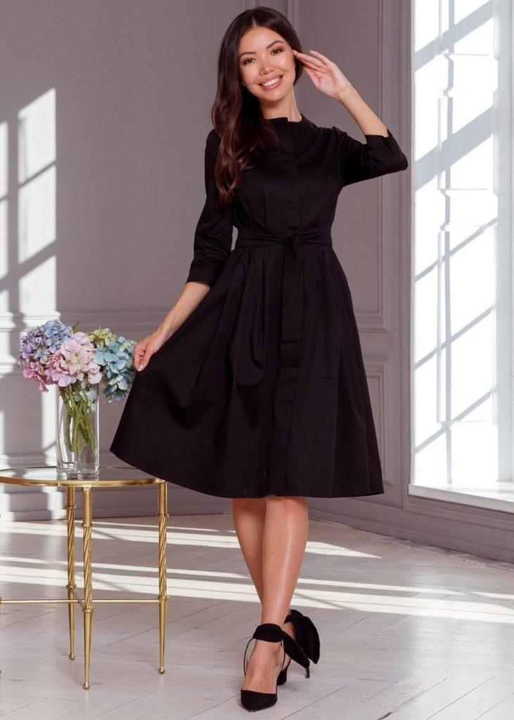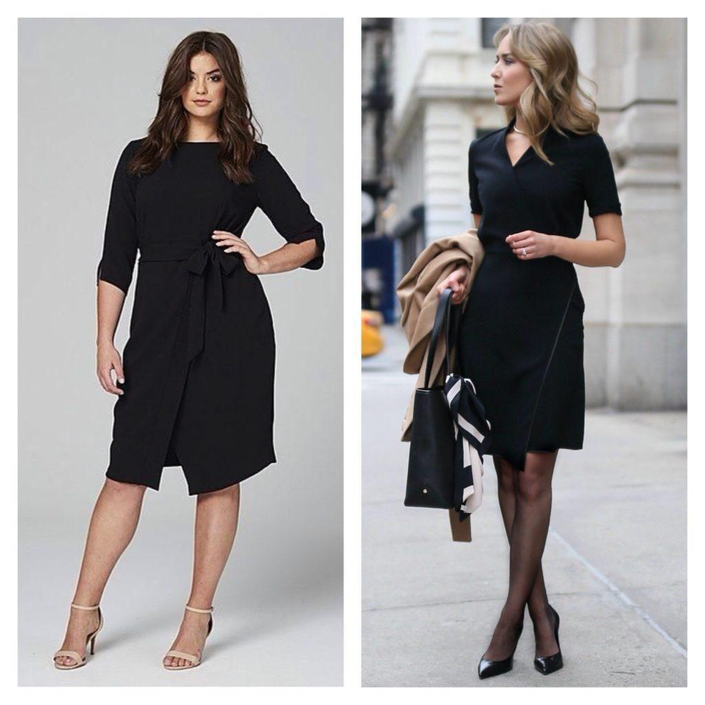 La silhouette ajustée classique d’une robe noire, une chose irremplaçable car elle sert de bonne base pour les tenues féminines. Une telle robe est mince et cache parfaitement les défauts. Il s’intègre également bien dans un look professionnel et décontracté. Ce modèle est présenté long au niveau du genou.