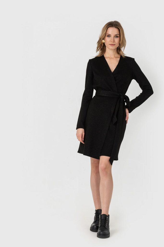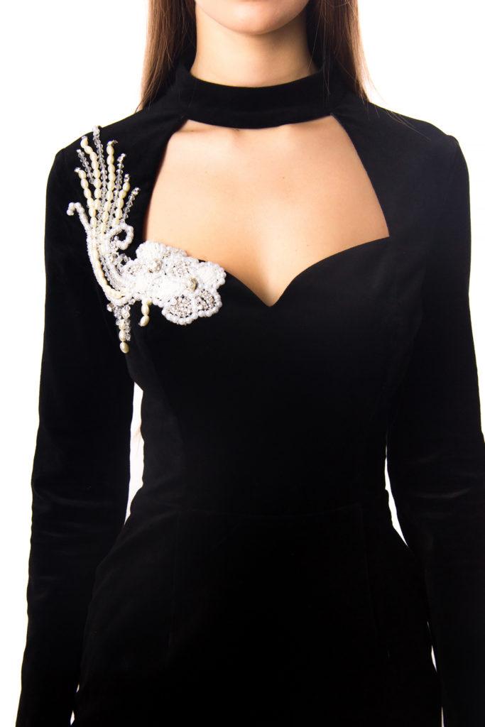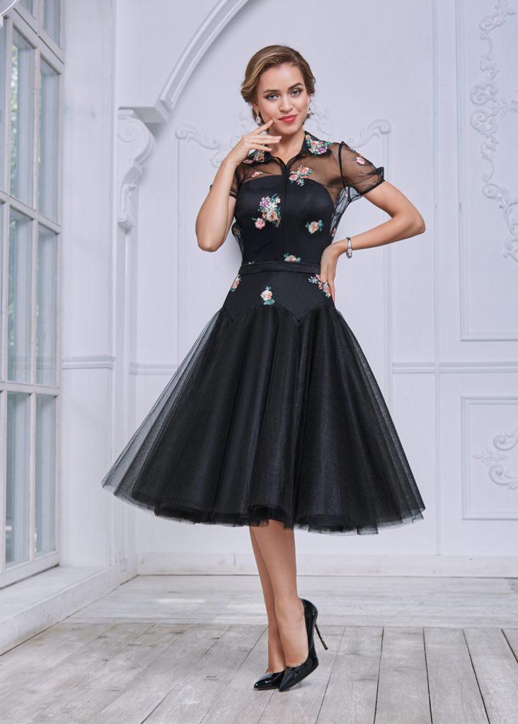 Luxe et élégance se retrouvent dans une robe ajustée noire, mini longueur. Les manches et le décolleté peuvent être décorés de couleur or ou argent. Des modèles avec des draperies, des colliers ou des inserts sont également possibles.