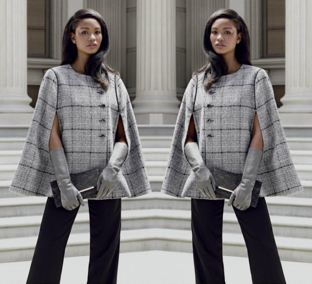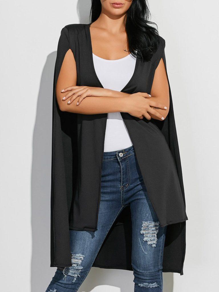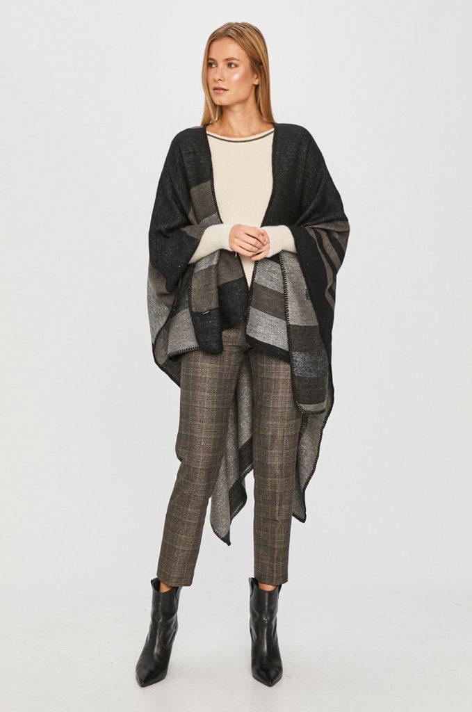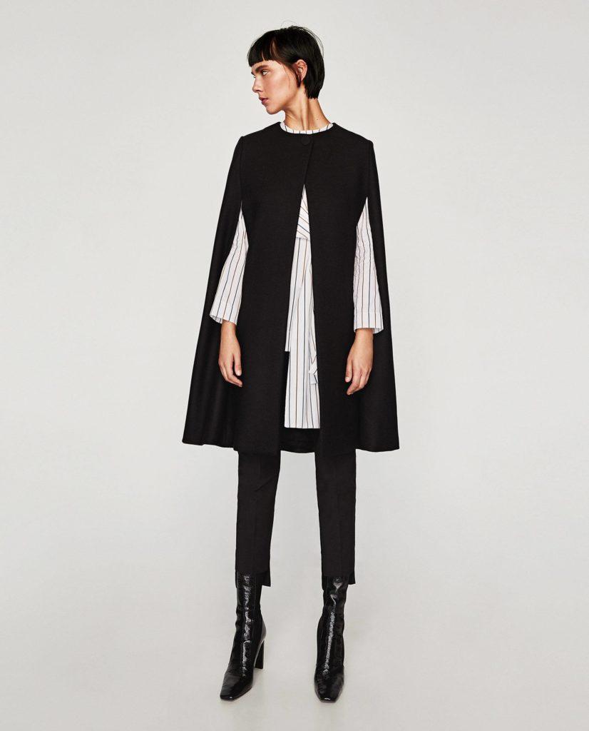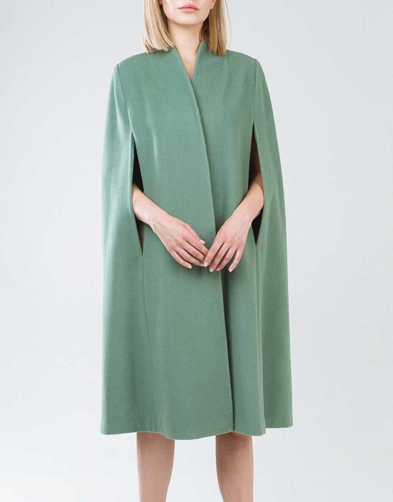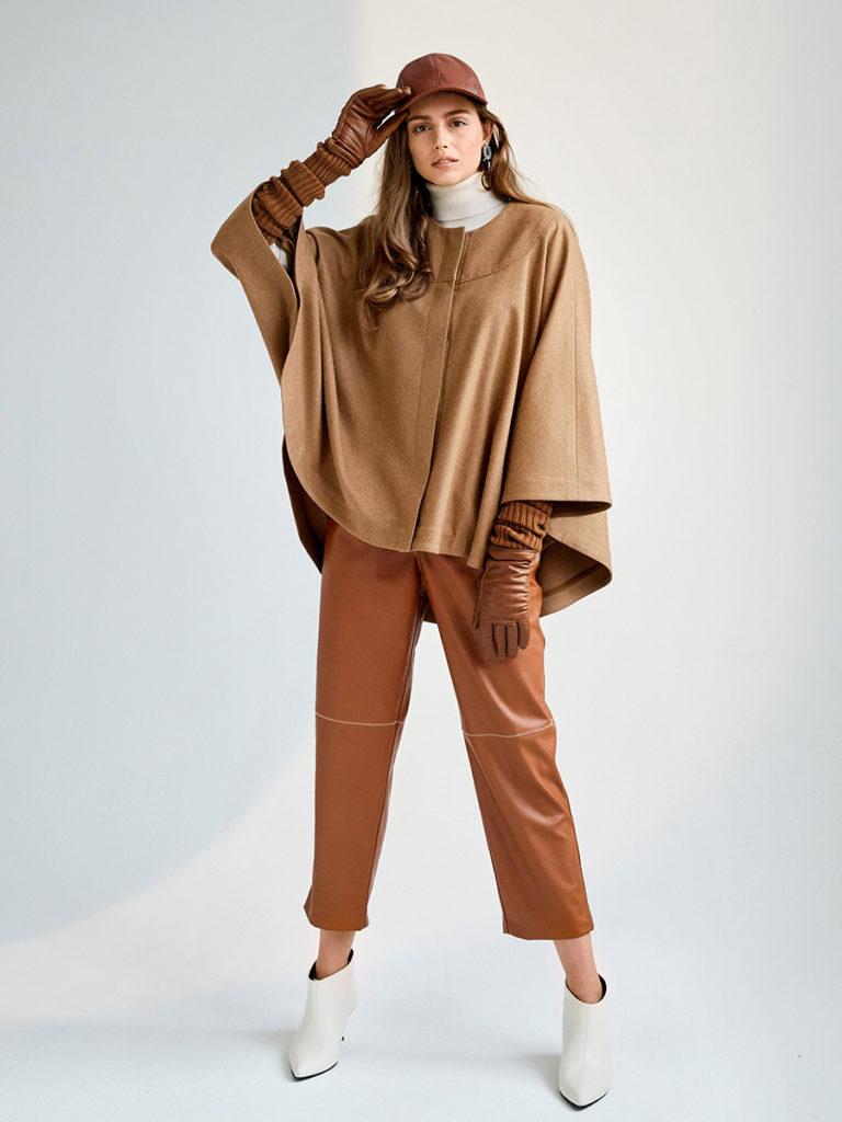 Les femmes élégantes de la mode sont tombées amoureuses de Cape pendant longtemps. Il s’agit d’un manteau cape avec des ouvertures de bras sans manches, avec ou sans boutons à l’avant. Il complète le look avec élégance, le rendant à la mode et non trivial. Une telle chose va bien avec un fond serré. Et assurez-vous de porter des chaussures à talons pour que la silhouette soit visuellement gracieuse.