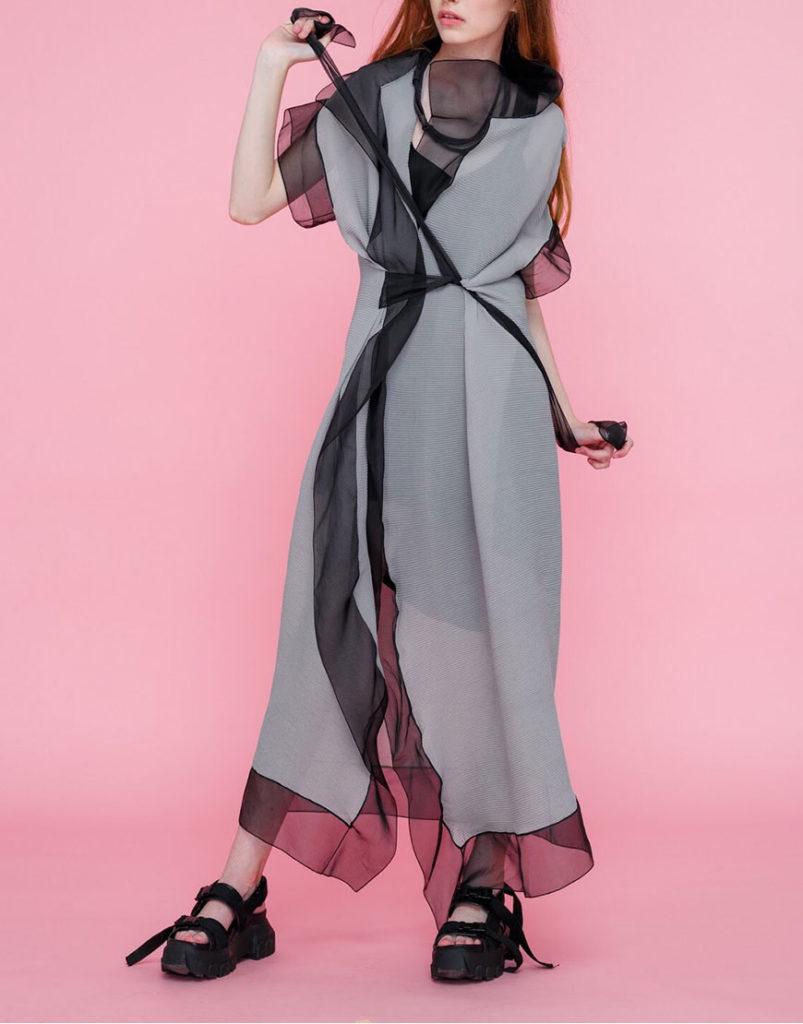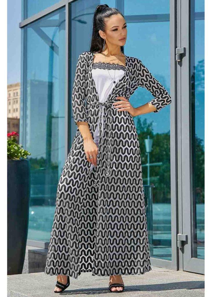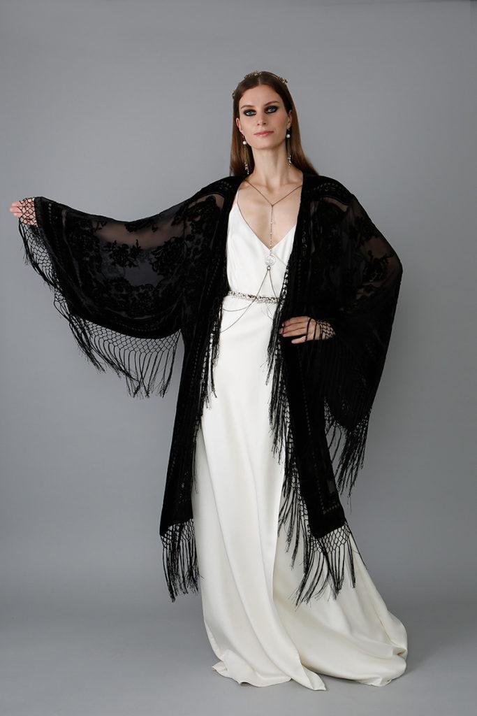 Un long kimono est une chose autosuffisante et ne nécessite aucun ajout. Vous pouvez le porter comme une robe, en attachant une ceinture autour de la taille pour l’odeur, pour correspondre à la cape afin de ne pas perturber l’harmonie de l’image.