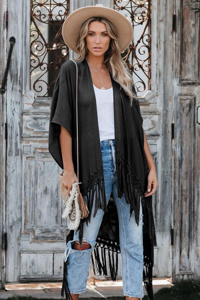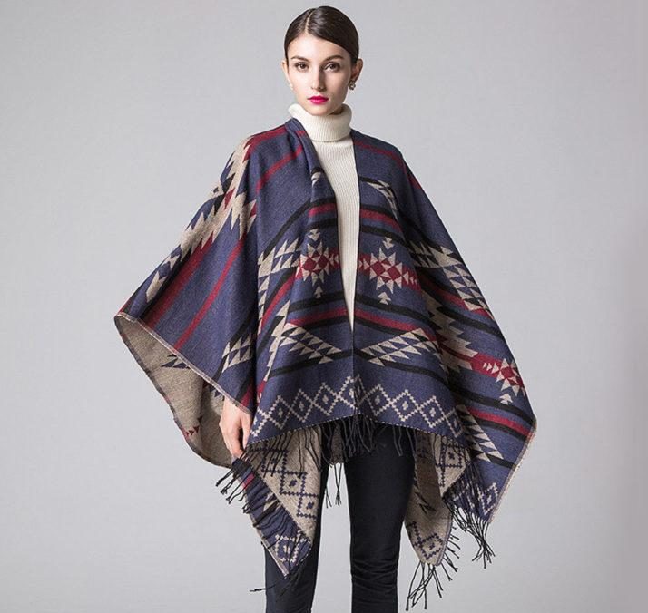 Les motifs ethniques sont toujours pertinents et présents dans la garde-robe des femmes. La cape kimono est donc tombée amoureuse des filles, pour son design original, ainsi que sa polyvalence dans l’élaboration d’une image.