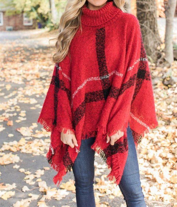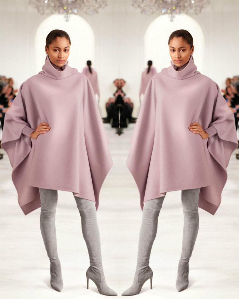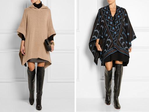 Pour les femmes aux formes, il vaut mieux faire attention aux modèles monochromes de capes et de ponchos, afin que la silhouette soit plus mince.