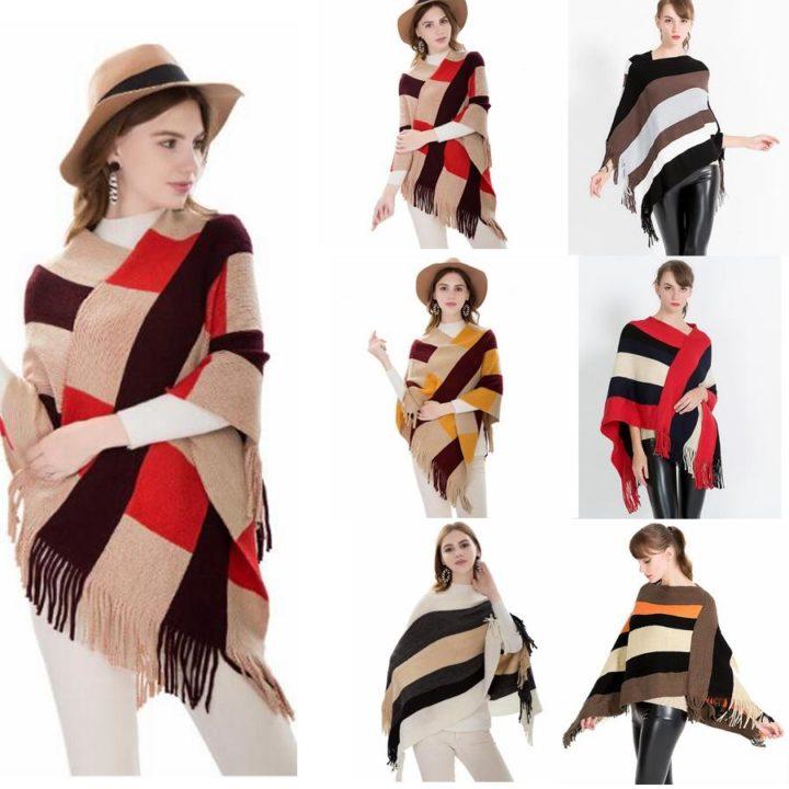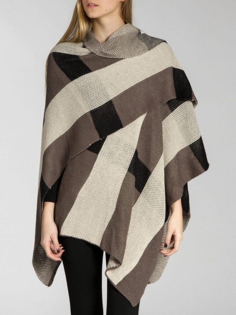 Au départ, le poncho était d’une coupe grossière, son design était emprunté aux tribus indiennes. Mais grâce aux matériaux modernes et aux designs à la mode, il est confortable et attrayant. Il est composé d’une coupe rectangulaire avec un décolleté et un trou pour les mains. Son principal atout, qui le rend confortable, est le bord libre, souvent décoré. Et grâce à une variété de styles, chaque femme choisira selon son goût.