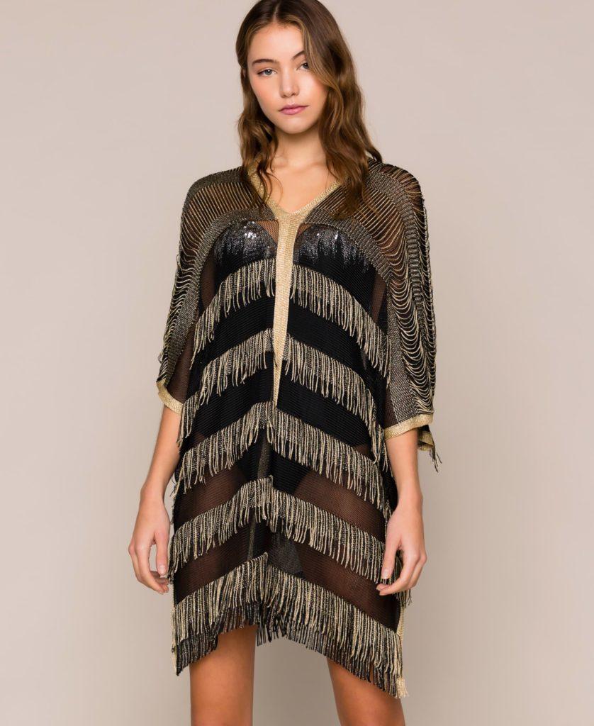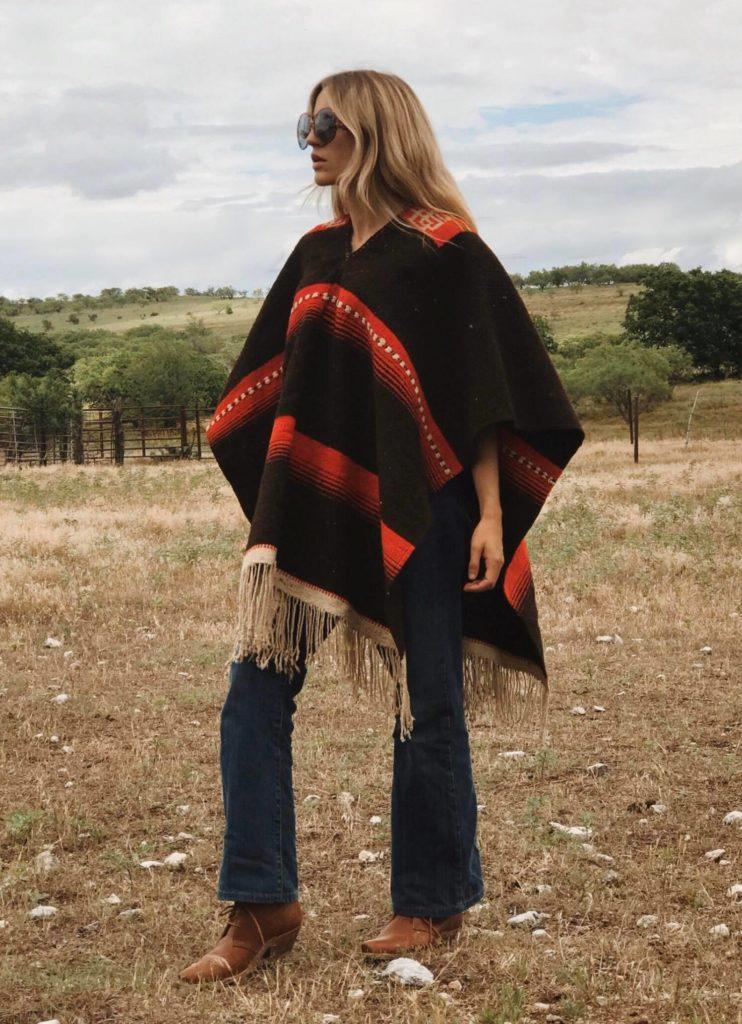 Traditionnel dans le style mexicain, il s’agit d’un tissu rectangulaire avec un trou pour la tête, sans manches. Ses particularités sont qu’il est en laine, il se porte sur la tête sans avoir de boutons. Et les couleurs mexicaines vives diversifient même un look ennuyeux. Un tel modèle est idéalement combiné avec un bas étroit, mais avec des jupes seulement pas longues, cela n’a pas l’air mal.