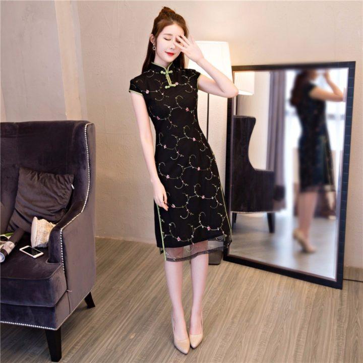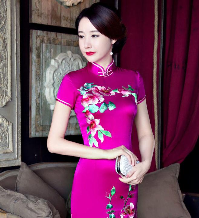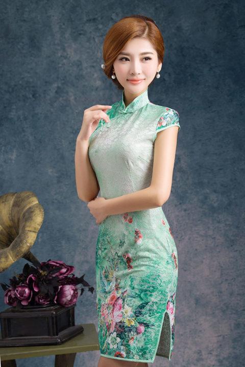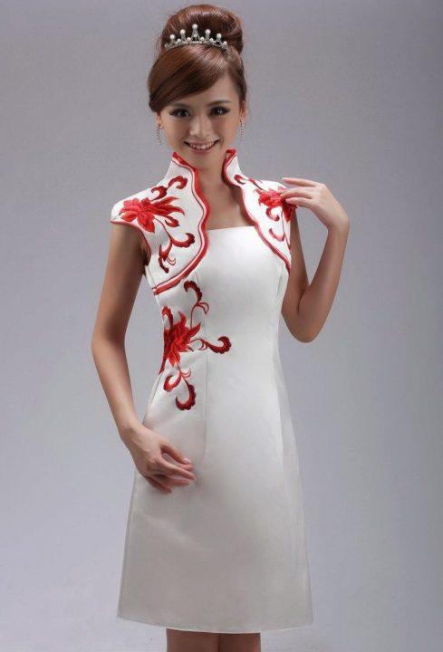Leur longueur est généralement juste en dessous du genou, mais on trouve également des modèles plus longs. Les couleurs traditionnelles des robes de style chinois sont le rouge, le blanc, le vert et autres.