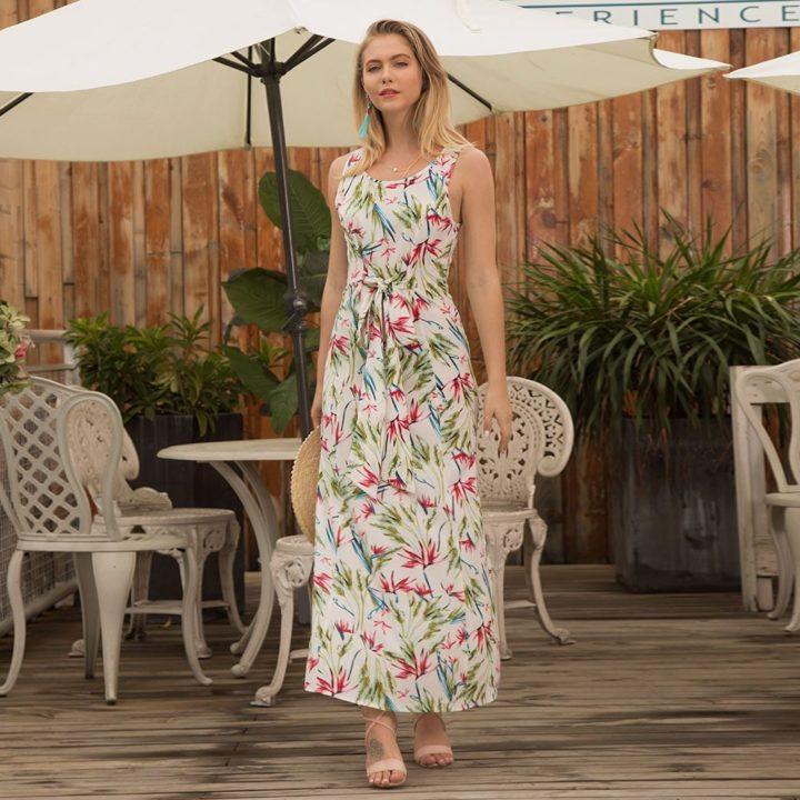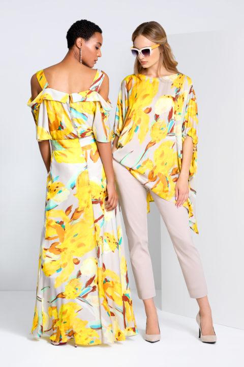 À l’été 2019, les robes longues aux couleurs vives deviendront à la mode. Les robes longues sont très féminines, elles sont capables de souligner le principe féminin, ainsi que de créer une image romantique. Le haut de la robe peut être ajusté, ce qui mettra joliment en valeur la poitrine, mais la jupe est de coupe droite ou plus aérée et évasée.