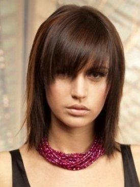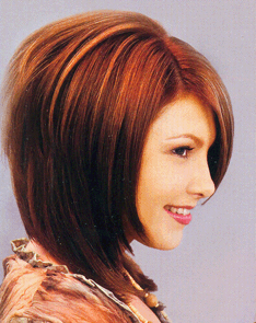 - Les cheveux sont coupés en diagonale des deux côtés et se rencontrent au point le plus long.