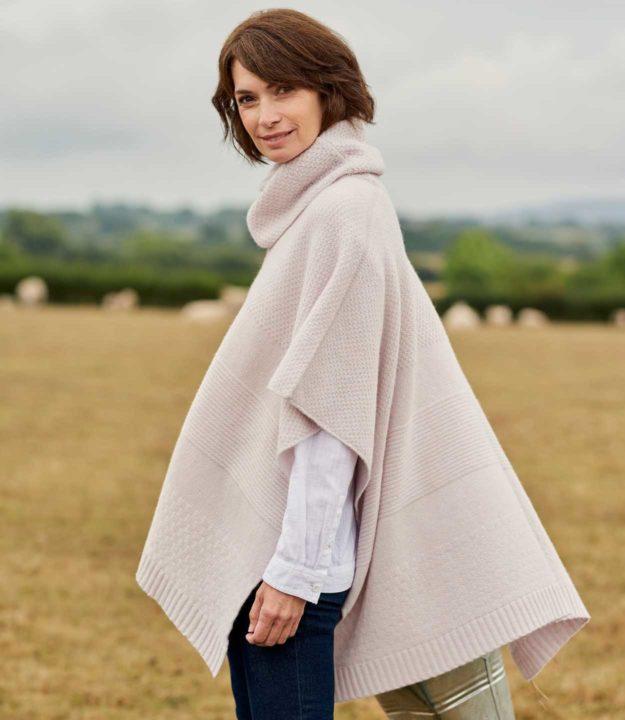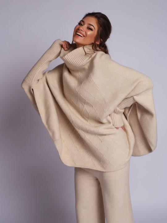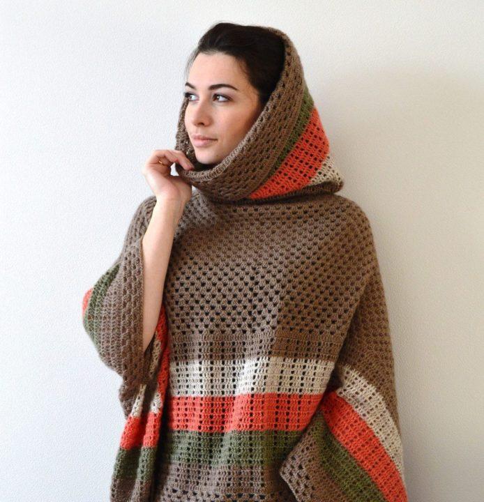Il va bien avec tout type de jeans, pantalons, pantalons, ainsi que des robes. Fondamentalement, ils produisent des modèles avec une longueur de taille, mais il existe également des modèles plus longs. Le poncho incarne la féminité, la sophistication du goût et du style.