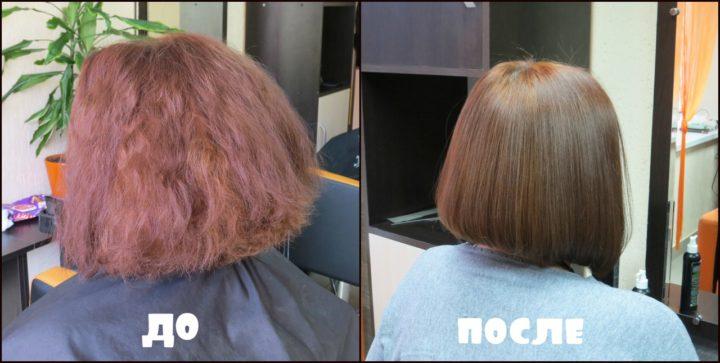 Ensuite, le maître rince vos cheveux, rince les restes de la composition. Il n’utilise pas de shampooing, car avec lui, vous pouvez fortement laver le produit et la procédure sera inutile. Après cela, le maître applique un masque nourrissant sur les cheveux, sèche les mèches et coiffe les cheveux.