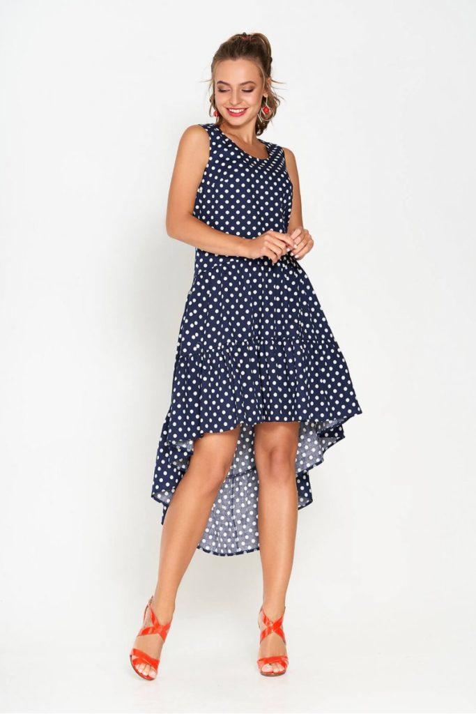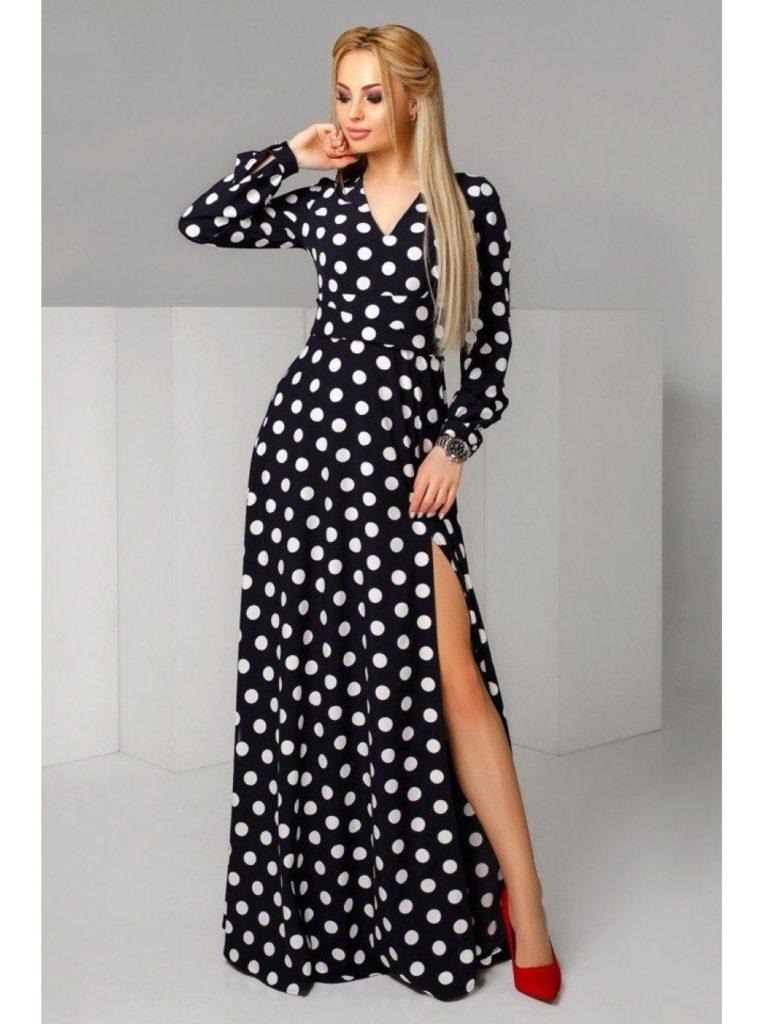 Les pois sont un imprimé intéressant et gagnant-gagnant pour une robe. Dans les modèles classiques, les pois sont de la même taille sur tout le vêtement. Nous portons à votre attention plusieurs modèles d’une combinaison de différentes tailles de pois, ainsi qu’une impression différente sur un produit dans une palette de couleurs différente. Cette robe a l’air inhabituelle et élégante.