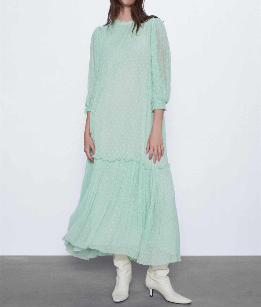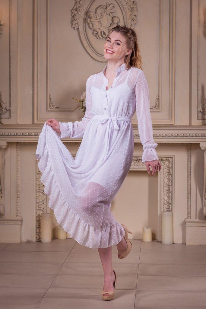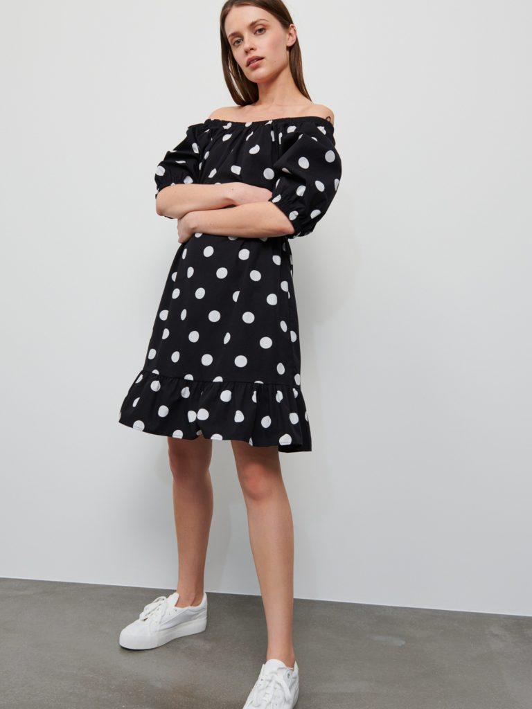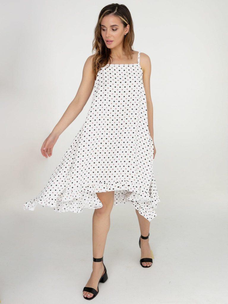 Une robe à volants est associée à la légèreté et à l’insouciance et au style jeune. Et la combinaison d’un tel décor avec une robe à pois lui donne de la tendresse et de la sophistication.