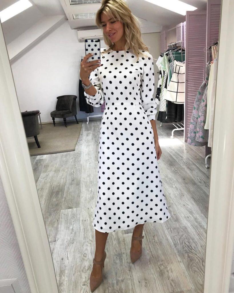 Une robe à pois est dans la garde-robe de chaque femme, quels que soient le style, la silhouette et l’âge de la propriétaire. Cet imprimé donne à l’image légèreté et facilité, et la variété des modèles vous permet de choisir une robe à votre goût.