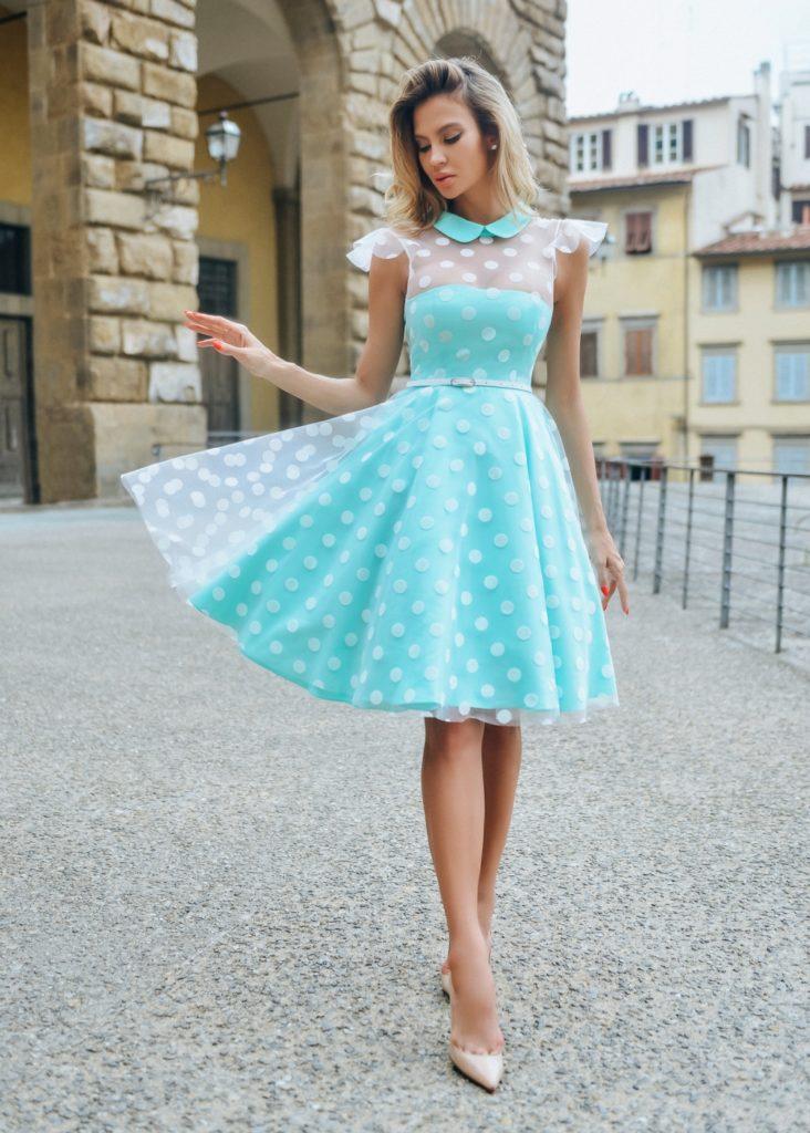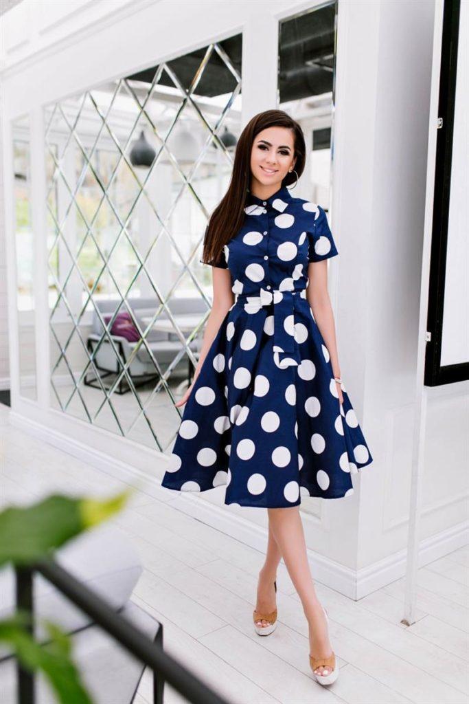 Les robes à pois avec des jupes bouffantes créent un look jeune et y ajoutent de la sophistication. Un tel modèle mettra en valeur votre taille. Et en combinaison avec des talons hauts, il rendra votre silhouette gracieuse et romantique.