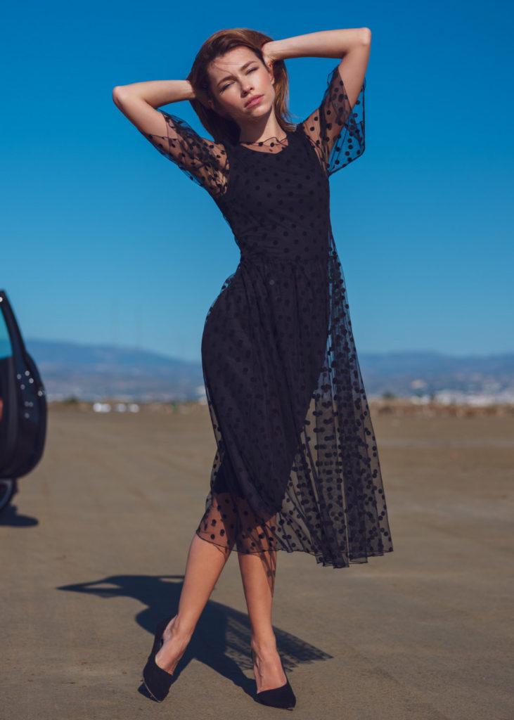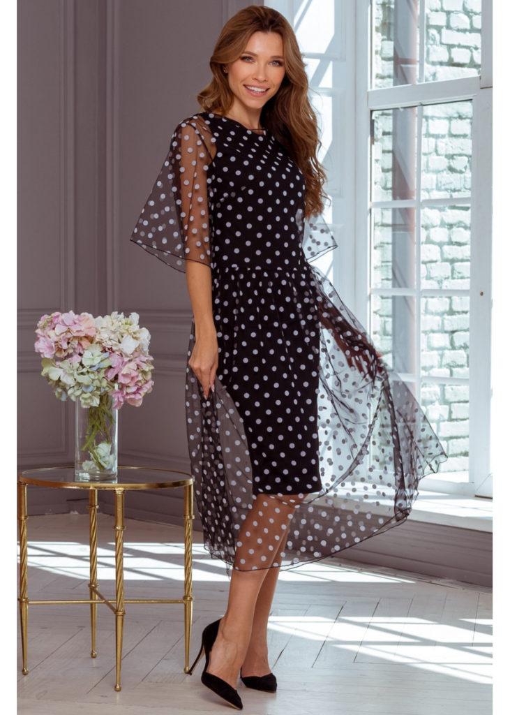 Une robe à pois ornée de maille ou de dentelle sera plus douce et extravagante. Et le piquant d’un tel modèle sera donné par un modèle avec une maille sur toute la robe.