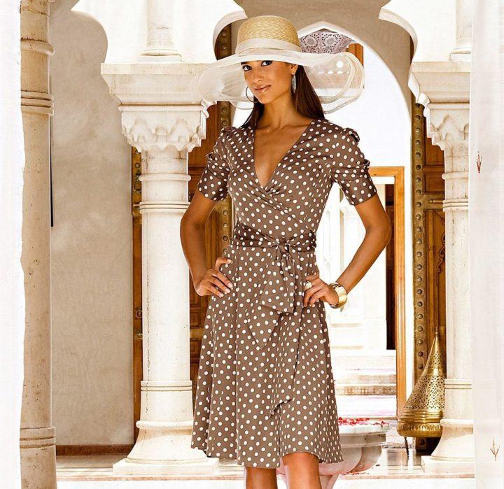 En combinaison avec une robe à pois, les chapeaux seront un choix intéressant. Pour les modèles foncés, les chapeaux sont choisis dans des couleurs contrastées. Et pour les robes légères, vous devez choisir un chapeau d’un ton similaire, pour que la tenue soit harmonieuse.