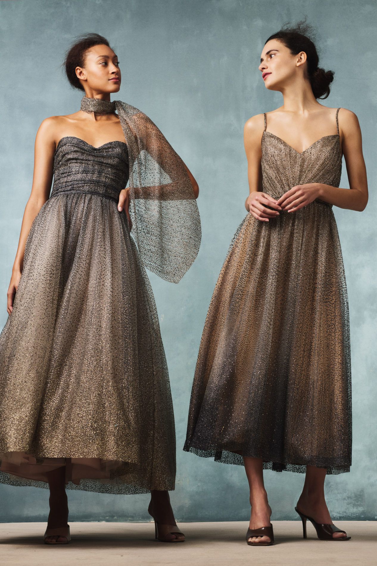 Les robes mulet sont une tendance incroyable et un nouveau produit incroyable pour 2020. Le dos allongé et l’ourlet court de la robe sont le point culminant principal. C’est l’asymétrie qui est considérée comme la caractéristique de l’année, utilisée par presque tous les créateurs de mode dans leurs collections 2020. Les épaules de cette version de la robe de soirée peuvent être complètement ouvertes. Un haut en dentelle translucide est également acceptable, similaire aux modèles de mariage.