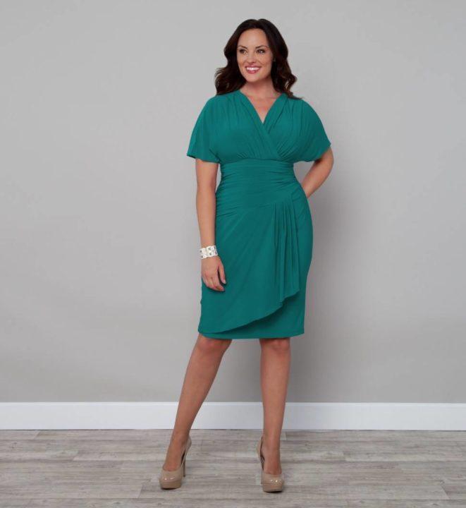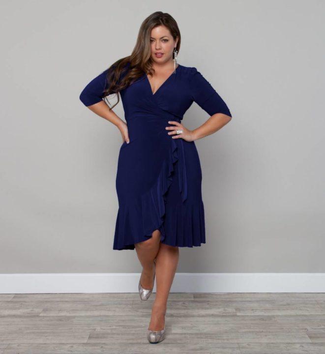 La robe portefeuille semble lisser toute la silhouette dans son ensemble, rendant l’image harmonieuse et réussie. Surtout, rappelez-vous que lors du choix d’une telle robe, il n’est pas recommandé de sélectionner des tissus trop fins. De tels tissus montreront toutes les inégalités du corps, ce qui n’aidera pas à créer une belle image.