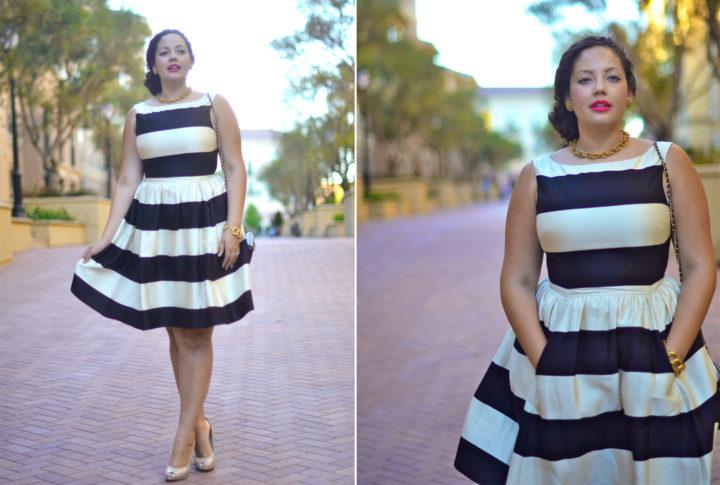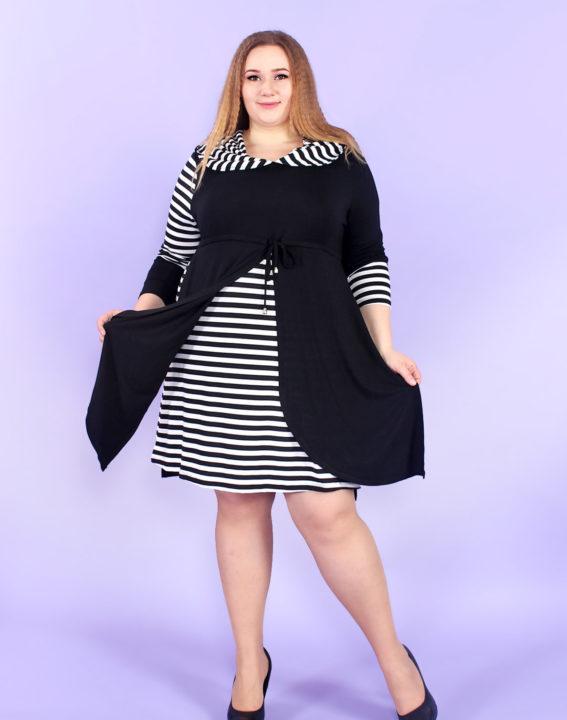 Mais les rayures larges et larges peuvent attirer toute l’attention des autres sur elles-mêmes, ce qui détourne déjà de l’imperfection de la figure. En particulier, une telle bande est choisie en noir et blanc standard, mais elle peut aussi être plus panachée.