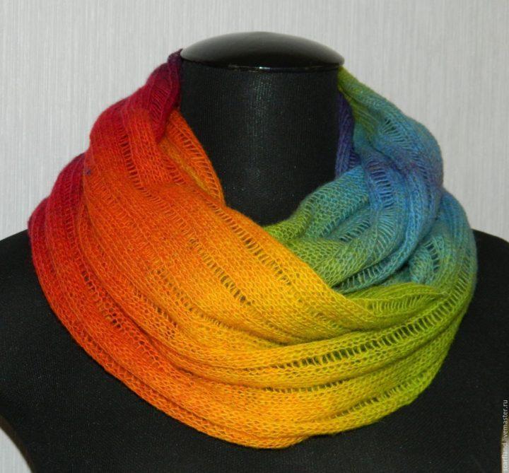 Le snood multicolore se distingue par de nombreuses couleurs et nuances. Il peut répéter les couleurs de l’arc-en-ciel ou contenir des couleurs aléatoires. L’essentiel ici est sa luminosité.