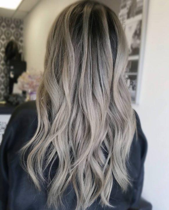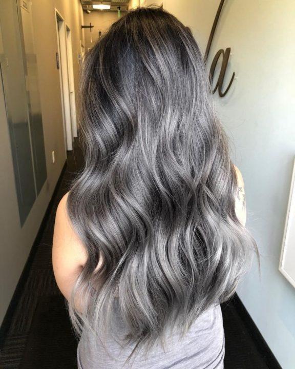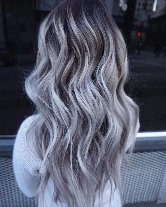 Les cheveux cendrés avec un éclat métallique froid seront à la mode en 2019 pour toutes les longueurs de cheveux. Mais cette couleur se révèle particulièrement joliment sur les cheveux longs, où une grande zone montre magnifiquement toute la profondeur de l’ombre et le jeu des couleurs.