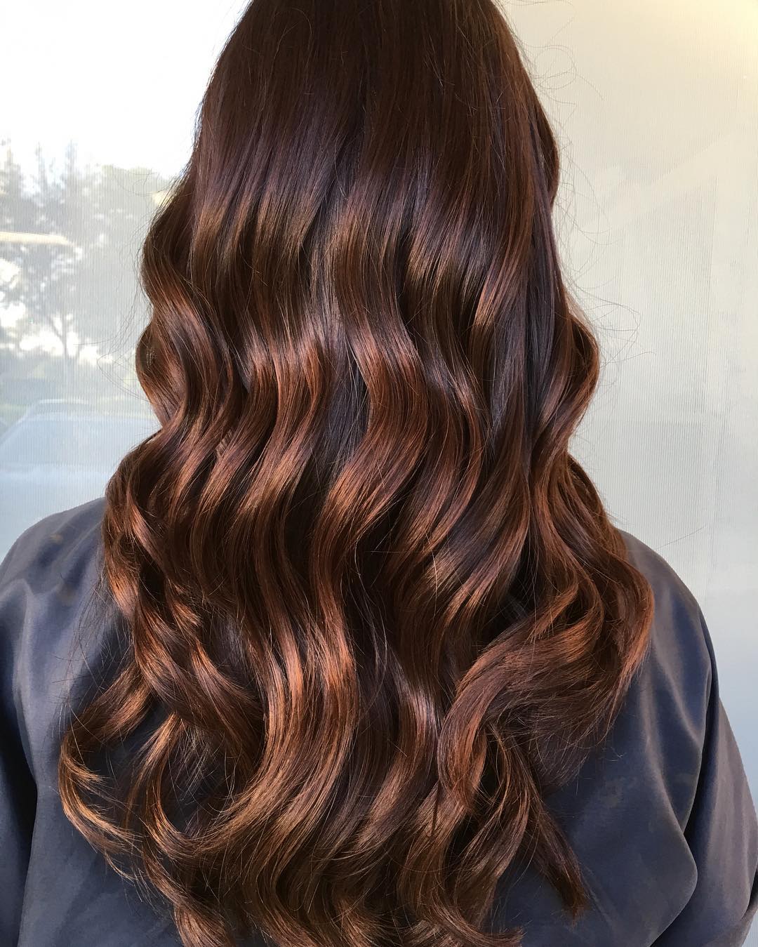 Cette méthode de coloration doit vraiment son nom à la Californie. Il a une certaine ressemblance avec la version classique de la mise en évidence, lorsque tout le choc des cheveux n’est pas exposé à la clarification de la racine, mais seulement des mèches individuelles. Cependant, la principale différence entre la méthode californienne est l’utilisation de différentes nuances du même schéma de couleurs. Dans ce cas, l’accent n’est pas mis sur l’étirement de la couleur ou sur la création d’un effet de cheveux légèrement brûlés, mais sur le jeu avec les débordements de couleur. Avec cette variation de coloration, vos cheveux apparaîtront visuellement plus luxuriants et volumineux, surtout lorsqu’il s’agit de cheveux naturellement foncés.